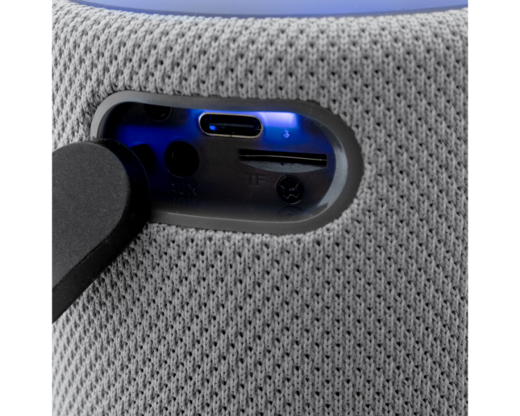 El altavoz ofrece un sonido potente y nítido con una potencia de 2 x 7W RMS, abarcando un rango de frecuencia de 80Hz a 18kHz para una experiencia auditiva envolvente. La batería interna de 1800mAh proporciona hasta 8 horas de reproducción continua, lo que junto su tamaño compacto y ligereza lo convierten en un acompañante ideal para tus escapadas.