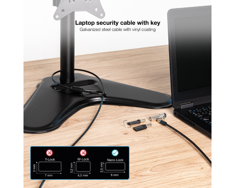 1.5m/ Solo compatible con ranuras tipo NANO/ Acero galvanizado/ Bloqueo con llave