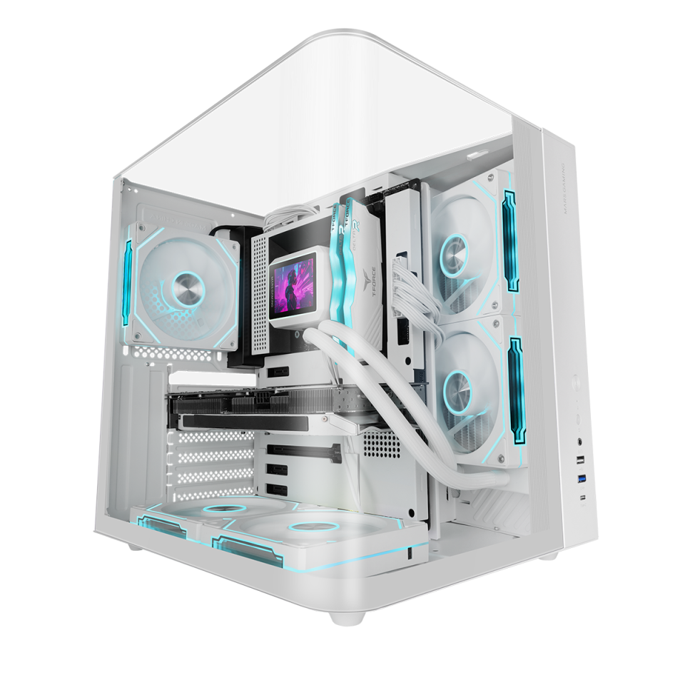 Triple ventilación frontal de serie, soporte para hasta 8 ventiladores de 120 mm, rejilla superior y diseño de cámara dual. Compatible con refrigeración líquida de 240 mm y 120 mm.