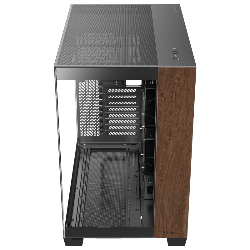E-ATX/ INT:2x3.5,4x2.5/ 2xUSB3.0, 1xUSB-C/ Audio In/Out / Cristal templado/ Panel frontal de madera