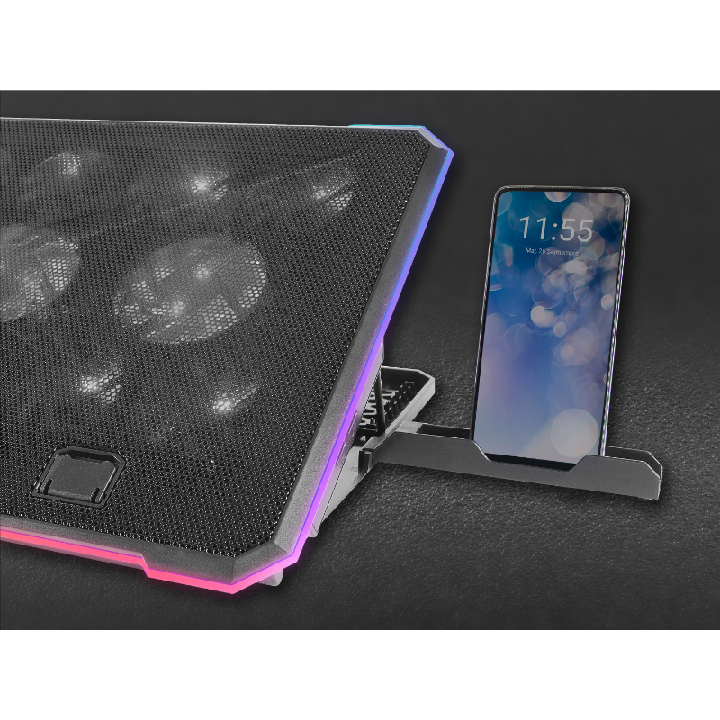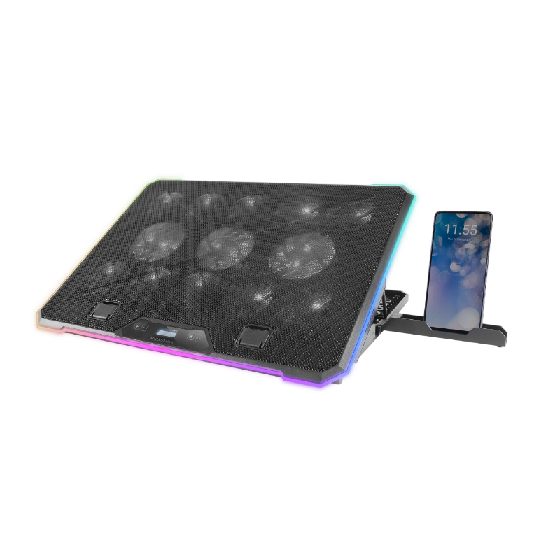 Hasta 17"/ 13 ventiladores/ Función stand/ Iluminación RGB/ Soporte para smartphone/ Pantalla LED