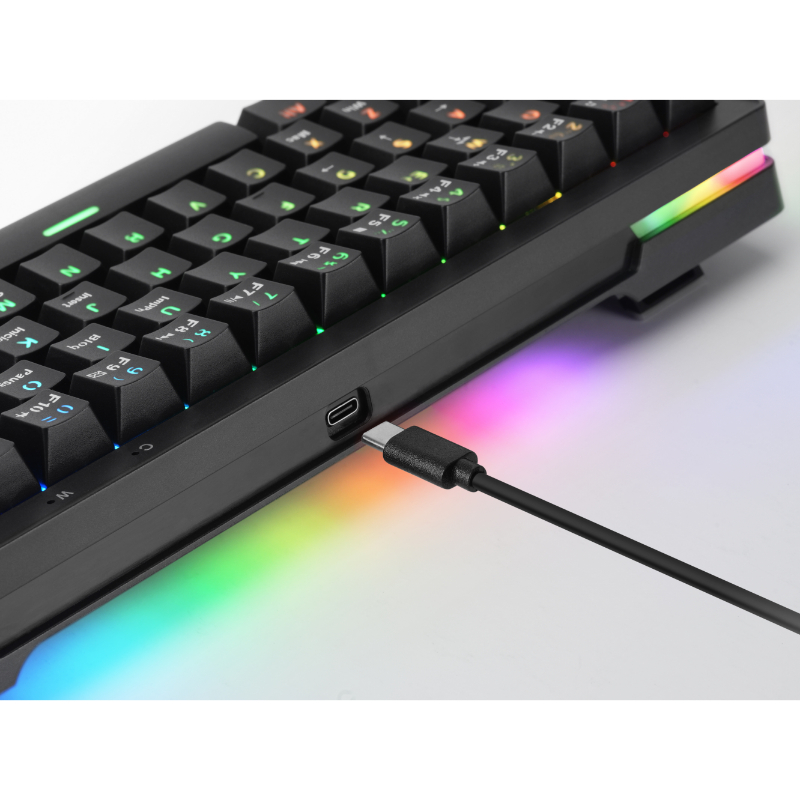 El teclado cuenta con una retroiluminación RGB completa con efectos de iluminación periférica en la parte trasera y lateral. Elige entre múltiples modos de iluminación personalizables para que tu setup luzca único y adaptado a tu estilo, creando un ambiente espectacular.
