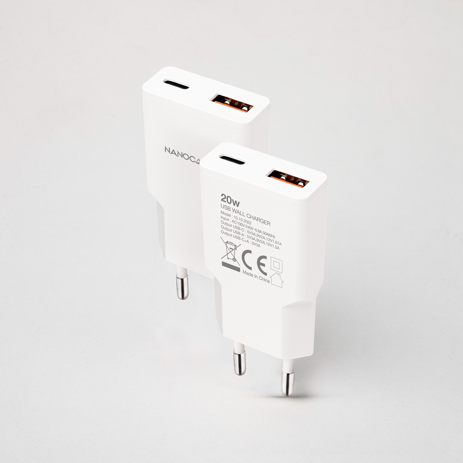 CARGADOR PARED 1XUSB-C PD 1xUSB-A/QC 20W BLANCO NANOCABLE