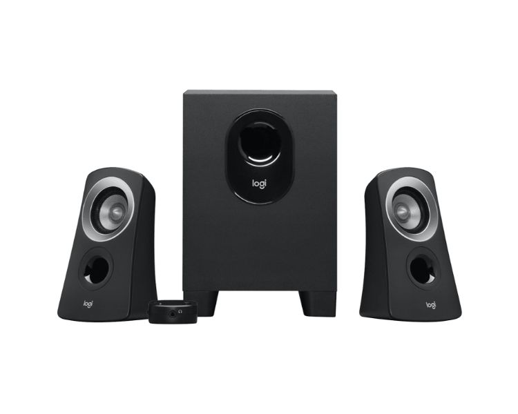 Este sistema de altavoces 2.1 ofrece una acústica equilibrada y proporciona graves mejorados con un compacto subwoofer. Conecta cualquier dispositivo a la entrada de 3,5 mm (0,14 pulgadas) y accede fácilmente a los mandos de encendido y volumen utilizando la sección de control cableada.