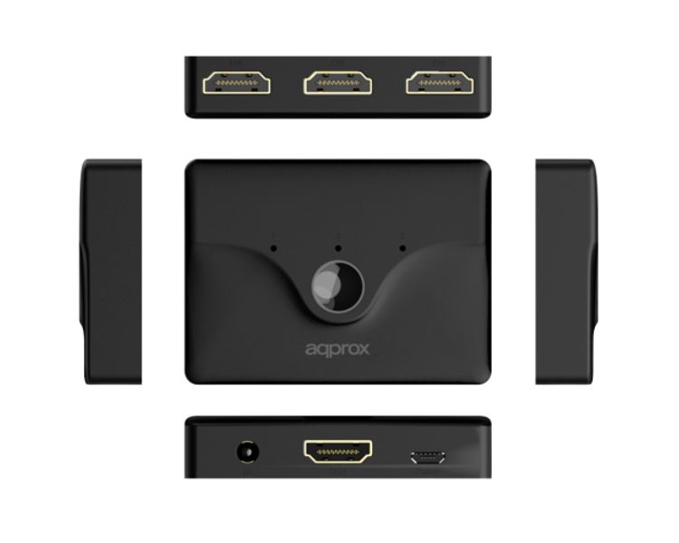 El appC29V3 es un switch HDMI de tres puertos HDMI de entrada y uno de salida, el cual conectado a su TV le permite seleccionar entre tres dispositivos HDMI, ocupando un solo puerto HDMI en su TV, es ideal para aquellos TV que tienen pocos puertos HDMI de entrada y necesitan conectar varios dispositivos a la vez. Soporta una calidad máxima de imagen de 4K/30Hz, incorpora un botón de selección de fuente de entrada manual y no requiere de alimentación externa.