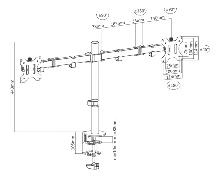 Colocación soporte: Mesa Color del Producto: Negro Nº Monitores: 2