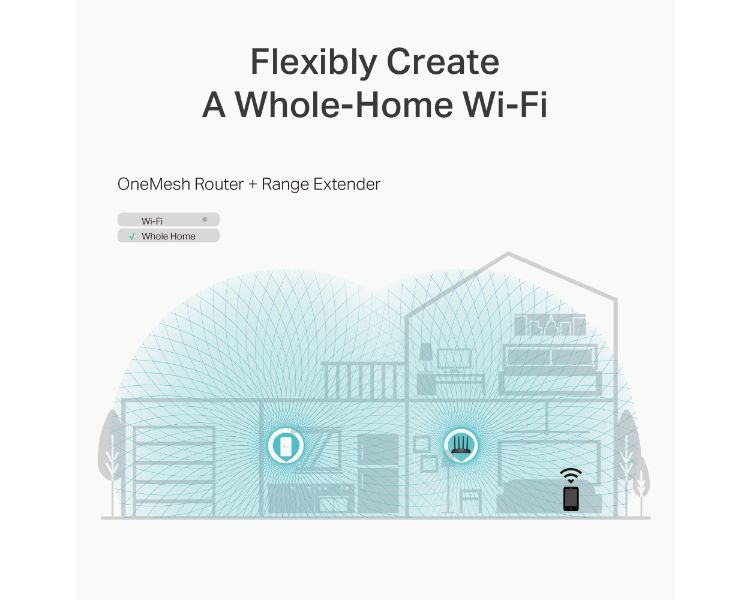 Sin reemplazar sus dispositivos existentes o comprar un ecosistema WiFi completamente nuevo, OneMesh " lo ayuda a crear una red más flexible que cubra toda su casa con los productos TP-Link OneMesh "Learn More>